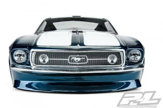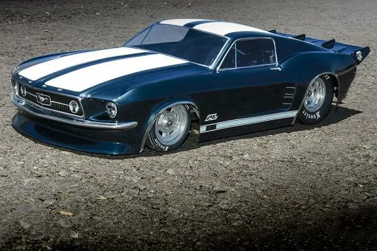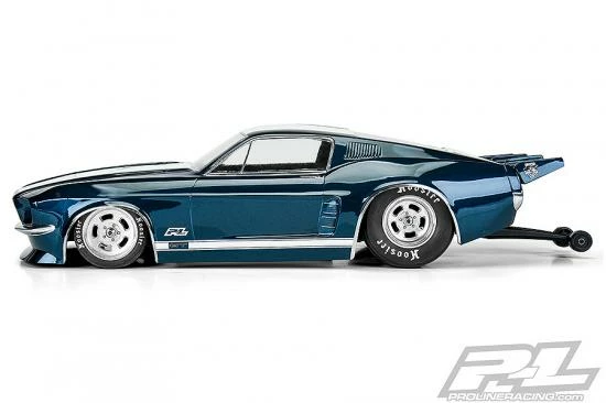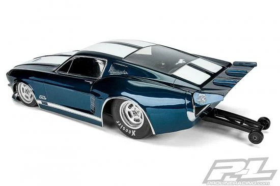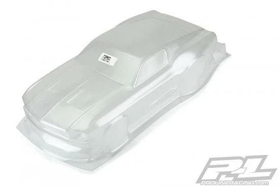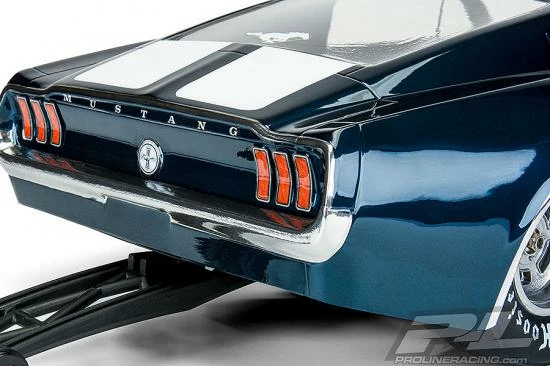 This is a 1967 Ford® Mustang Clear Body for Drag Racing. Ford fans, your time has come! Pro-Line is proud to introduce the iconic 1967 Mustang clear body to the no prep drag racing scene. The front end features a massively inset grill and headlights just like the full-size muscle car, which is only made possible with Pro-Line’s proprietary molding technology. This Mustang body has been faithfully recreated in 1/10 scale size and tuned specifically for drag racing. The body comes clear giving you the option to paint the body however you desire. Pro-Line even includes a drag-style rear wing to keep you going straight down the track. If you are a Mustang fan, then this is a must-have body for your drag car. Get your own 1967 Ford® Mustang body today!