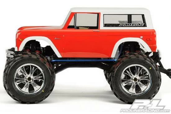 This is a 1973 Ford® Bronco Clear Body. Pro-Line is pleased to announce the release of the 1973 Ford® Bronco body for 1:10 Rock Crawlers. Pro-Line has captured the overall essence of the Bronco and have now made it available in 1:10 scale format for 12″ wheelbase Rock Crawlers! Complete with detailed grill, headlights, body molding trim, and that original distinct Bronco look, classic truck scalers will not want to be left behind.