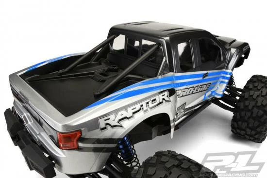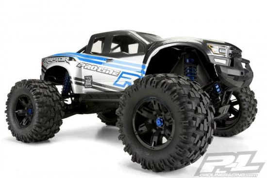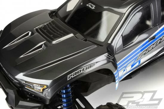 This is a Pro-Line 2017 Ford® Raptor Body for the X-MAXX®. Introducing one of the most anticipated Truck bodies of all time: the all-new 2017 Ford® F-150 Raptor truck body for the X-MAXX®! Pro-Line has included all the aggressive scale detail into the body and sticker sheet for a highly detailed replica and it comes Pre-Cut to get you going faster. The 2017 Raptor has a bold and tough body style that is the most cutting edge look available. This body completely transforms your X-MAXX® into an even crazier Bash Machine and allows you to add a custom paint job! If you are a Raptor or X-MAXX® fan, then this is the body for you! Be the envy of your friends. Get your Pro-Line 2017 Ford® F-150 Raptor body today!