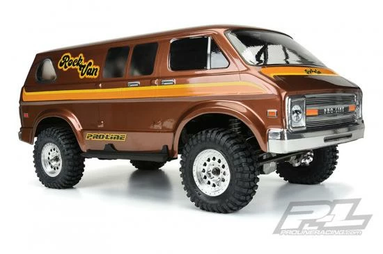 This is a ’70s Rock Van Clear Body for Scale Crawlers. It’s time to get your retro creative juices flowing with the new Pro-Line ’70s Rock Van body! Based on the iconic Vans of the mid-late 1970s, the Rock Van provides a blank canvas to recreate the most awesome vans of yesteryear. From cable news vans, to ice cream trucks, to overlanding rigs, to transporting around your favorite team of ex-US Special Forces: the possibilities are endless!