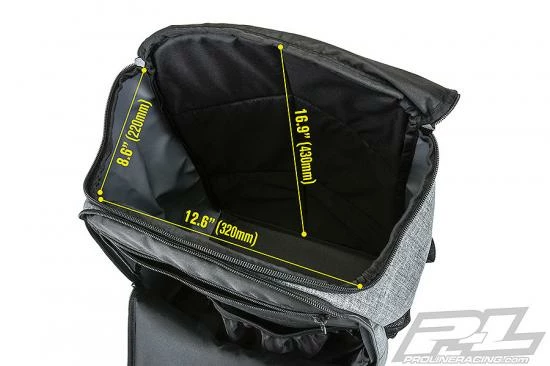 Pro-Line is proud to announce the new Active Backpack that is ideal for your active lifestyle! This large, padded backpack can carry a 1:10 scale buggy, touring car, or smaller RC cars but it is also perfect for everyday items like books, laptops, and clothes. Features one large, top-loading compartment and a smaller outer compartment with one internal zippered pocket and another internal elastic pocket. An elastic mesh pocket on each side allows for carrying water bottles and other accessories. The shoulder straps are padded for maximum comfort and are made from a mesh material to wick away moisture. The Active Backpack even includes a chest strap to help save your back and promote improved posture during long trips. Heavy-duty zippers are used throughout this premium backpack and Pro-Line logos are placed strategically so you can share your Pro-Line love with the world.