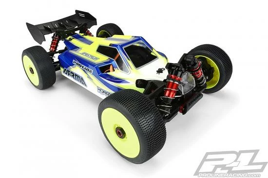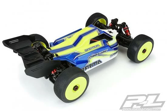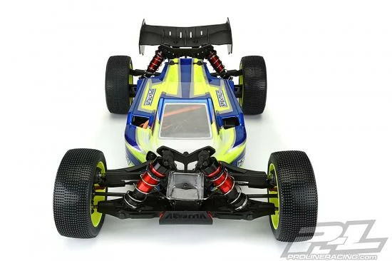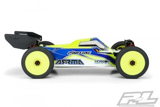 Pro-Line is bringing the latest high-performance race body to the ARRMA® TLR® Tuned TYPHON™ & TYPHON™ 6S! Designed with the latest in CAD technology, the Axis features a super low-slung design with sharp lines throughout giving it an unmistakable look on the track or at your favorite bash spot. The Axis is a cab-forward design that provides enhanced steering response while the small side fins balance out the rear of the car with the ideal side-bite. The rear of the Axis body has the right amount of clearance for the motor and electronics and fits the chassis and bulkhead shape of your buggy perfectly.