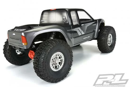 Introducing the all-new Cliffhanger High Performance Rock Crawling competition body from Pro-Line that was developed specifically for 12.3″ wheelbase Class 2 and Class 3 vehicles. Scale competition crawling is a growing part of the overall rock crawling movement and Pro-Line’s Cliffhanger body provides everything that these competitors have been asking for. The Cliffhanger features a pinched front end and a dove-tailed rear end for maximum tire clearance while still maintaining a true-to-scale appearance. The Cliffhanger is made from a single piece of crystal-clear polycarbonate to save on weight and has a molded-in drop-down bed to make room for you to add your favorite scale accessories. Everything on the Cliffhanger body has been optimized for maximum crawling performance while still complying with the letter and spirit of the competition crawling rules. Don’t get stuck behind on the rocks, get your very own Cliffhanger body today!