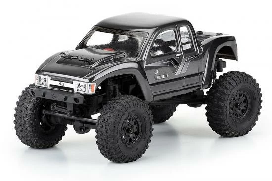 Introducing Pro-Line’s Cliffhanger body for the SCX24â„¢! Just like the larger Cliffhanger for 12.3″ Crawlers, this mini-Cliffhanger features a pinched front end and a dove-tailed rear end for maximum tire clearance while still maintaining a true-to-scale appearance. The Cliffhanger is made from a single piece of crystal-clear polycarbonate to save on weight and has a molded-in drop-down bed to make room for you to add your favorite tiny scale accessories. Everything on the Cliffhanger body has been optimized for maximum crawling performance for your SCX24â„¢. This body also includes optional headlight buckets for added scale appearance. Don’t get stuck on the rocks, get your very own Cliffhanger body today!