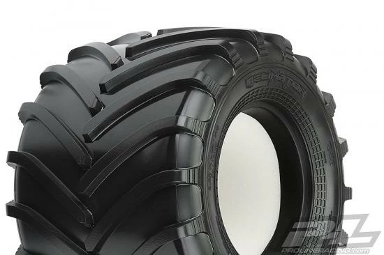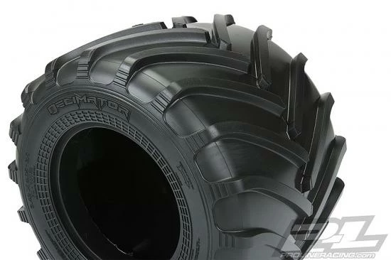 This is a Decimator 2.6″ Solid Axle Monster Tire. Pro-Line is proud to introduce the evolution in Race Tire Technology specifically designed for Scale Solid Axle Monster Trucks: The Decimator!! The Decimator is made from Pro-Line’s Legendary M3 Race Rubber and features a smaller overall size for more agile performance on Dirt or Carpet. Similar to full size Monster Truck Tires the Decimator tread is made up of alternating deep-grooved chevron style tread pattern for incredible forward traction while maintaining a scale appearance. The overall size and width of the Decimator tire has been finely tuned to be even more lightweight and agile than the Pro-Line Devastator 2.6″ tire, which makes it ideal for racing applications. The Decimator includes soft white foam inserts for ultra-plush landings, greatly improving the handling and performance of your Solid Axle Monster Truck. The Decimator is destined to become the go-to tire for Solid Axle Monster Trucks! Decimate the Competition! Get yours today!!