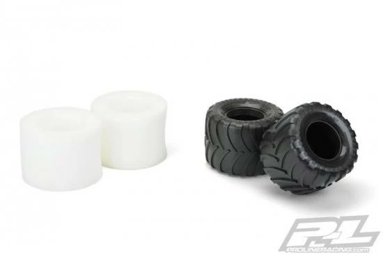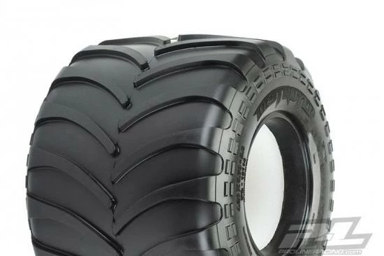 This is a Destroyer 2.6″ Solid Axle Monster Tire. Pro-Line is proud to introduce an tire specifically designed for Scale Solid Axle Monster Trucks: the Destroyer!! The Destroyer is made from Pro-Line’s Legendary M3 Race Rubber for Maximum Destructive Traction on Dirt or Carpet. Similar to full-size Monster Truck Tires the Destroyer features an alternating deep-grooved chevron style tread pattern for incredible forward traction while maintaining a scale appearance. The overall size and width of the Destroyer tires have been finely tuned to be lightweight and agile, which makes it ideal for racing applications. The Destroyer includes soft white foam inserts for ultra-plush landings, greatly improving the handling and performance of your Solid Axle Monster Truck. The Destroyer is Destined to become the Go-To Tire for Solid Axle Monster Trucks! Get yours Today!!