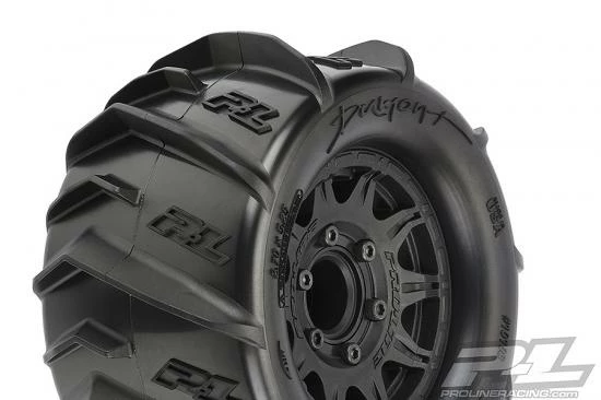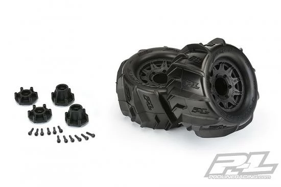 This is a pair of pre-mounted Dumont 2.8″ Tires on Raid Black 6×30 Removable 12mm Hex Wheels. Are you ready for the most extreme 2.8″ Paddle tires Pro-Line has ever made for 1:10 Monster Truck? Introducing the all-new Dumont 2.8″ tires that have been designed from the ground up to sling sand and snow further than ever before and look good doing it!