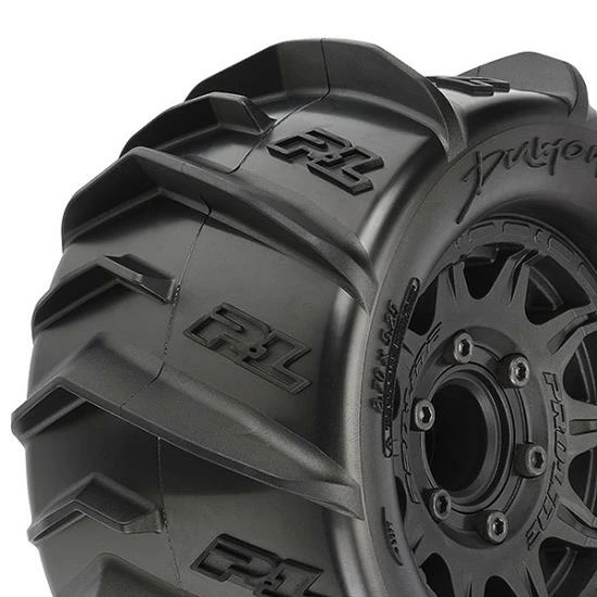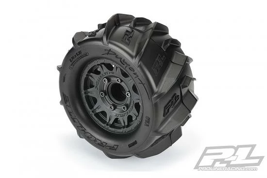 The Dumont 2.8″ tire uses the latest in paddle tread technology with large offset V-shaped paddles for maximum roosting power. Pro-Line P-L logos have been embedded into the tire carcass giving it the style that you have come to expect from Pro-Line. The Dumont Paddle tire gets its name from the incredible Dumont Sand Dunes in California, but these paddle tires are equally at home shredding your local snowfield in the winter. Don’t get stuck spinning your tires in the sand or snow. Get a set of pre-mounted Dumont Paddle tires for your 1:10 Monster Truck today!