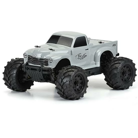 This is the Early 50’s Chevy® Tough-Color (Stone Gray) Body for the Stampede® and Graniteâ„¢. Pro-Line welcomes you back to the past of automobiles with the release of the Early 50’s Chevy® made from the new Tough-Color Stone Gray polycarbonate. Pro-Line’s classic car enthusiasts captured the overall essence of the Early 50’s Chevy® and made it available in 1:10 scale format for the Stampede® and Graniteâ„¢. Complete with detailed grill, headlights, body molding trim, and that overall distinct Early 50’s look, all classic truck enthusiasts will come to appreciate the overall styling the 50’s have to offer. The Tough-Color polycarbonate is made from gray material, so you never have to worry about paint peeling or chipping off. Realistic window stickers are also included!