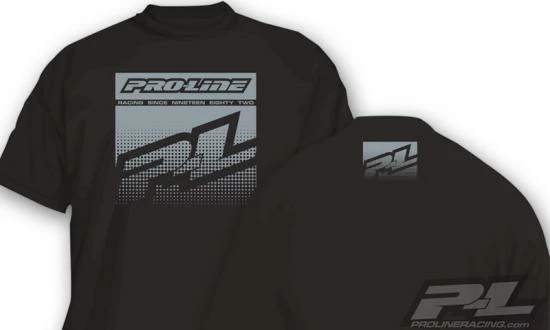 This is a Pro-Line Half Tone Black T-Shirt. Pro-Line has a new Black T-Shirt for Pro-Line fans designed in Half Tone styling! Featuring a large centered Gray Pro-Line Logo and an even larger P-L logo that fades to black in audio Tone styling, this 50/50 Blend T-Shirt is just what you need for 2017. The back has a smaller version of the front logo centered on the upper back. Get your Pro-Line Half Tone Black T-Shirt today!