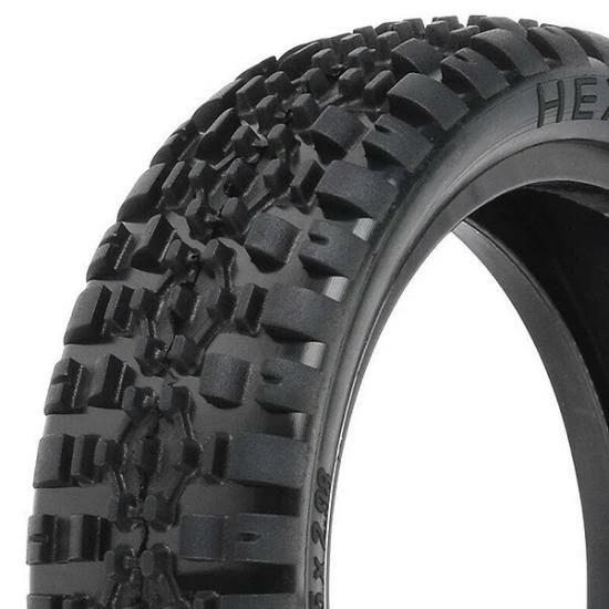 This is a pair of Hexon 2.2″ 2WD Front Carpet Buggy Tires. Introducing the Pro-Line Hexon 2.2″ Carpet 2WD Front race tire! The Hexon front tire features a hexagon pattern of uniquely shaped pins combined with Wedge style outer pins that provide longer-lasting tread and more consistent performance than previous generations of carpet tires. The Hexon front features a low-profile tire carcass shape that lowers your car’s center of gravity for improved corner speed due to consistent sidewall flex. The Hexon pins are pointed front to back for maximum control in the corners providing the direct feel carpet racers crave. The Hexon front tire is another leap forward in the hot carpet racing scene; be the first with the fastest carpet tire yet – Pro-Line’s Hexon Front!