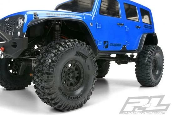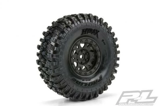 The Hyrax 1.9″ tire comes conveniently pre-mounted to our Impulse Black Plastic 1.9″ wheels that are Proudly Made in the USA! These all-new Impulse wheels are designed to not only look scale but to be super easy to use by only requiring 6 screws per wheel for mounting tires. The unique 3-piece plastic wheel design bolts together in the back and locks on to Pro-Line’s incredible list of 1.9″ Crawling Tires. The back of this 12mm hex Rock Crawling 1.9″ wheel also accepts Pro-Line’s Brass Brake Rotor Weights (sold separately) for additional looks and performance. The overall wheel width and wheel offset are the same as Pro-Line’s line of 1.9″ Aluminum Pro-Forge Wheels, so you know they will fit your truck and look good doing it.