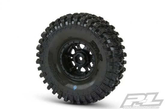 This is a pair of pre-mounted Hyrax 1.9″ Tires. The future of 1.9″ Tire Performance has arrived with Pro-Line’s Hyrax Tire mounted to Impulse Black/Silver Wheels! Designed for maximum grip on the toughest terrain, the Hyrax tire is ready for anything your Scale Adventure might throw at you. The Hyrax features an aggressive and open tread pattern with each tread block containing multiple Sipes for incredible tread flex. The highly detailed connected tread on the sidewall of the Hyrax extends out for unmatched side-hilling performance. The Hyrax also features futuristic stepped tread blocks that create even more forward gripping edges that dig into slick rock like no other scale tire Pro-Line has produced to date! The Hyrax is made from Pro-Line’s Legendary G8 material, so you know it provides performance you can depend on.