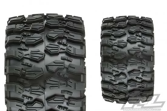 Pro-Line is bringing the extremely popular Hyrax rock crawling tread to the 1:10 Monster Truck scene with the Hyrax 2.8″ tire! Whether it is loose or hard-packed dirt, sand, snow, street, or gravel, the Hyrax 2.8″ tire is up to the task. The Hyrax 2.8″ tire was designed to have ultimate traction combined with long-lasting durability. Each tire lug is shaped to dig into whatever surface you are running on and is ultra-thick so that it is extremely durable.