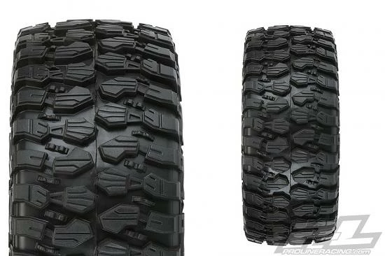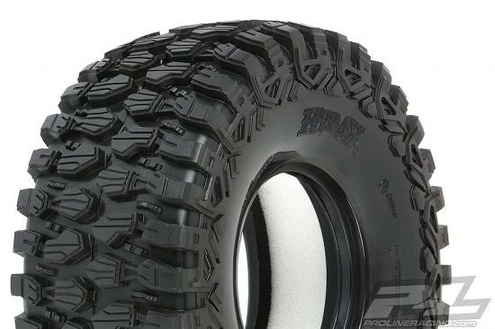 This is a pair of Hyrax All Terrain Tires for UDR. The future of Unlimited Desert Racer Performance has arrived with Pro-Line’s all-new Hyrax Tire! Designed from the ground up for incredible grip and stability on the toughest terrain, the Hyrax tire is ready to tackle anything your UDR can dish out. The Hyrax features an aggressive open tread pattern with each tread block containing multiple sipes for improved traction. The highly detailed connected tread on the sidewall of the Hyrax extends out for added scale realism and sidewall rigidity to prevent traction rolls. The Hyrax is made from a special Desert Racing compound, so you know it provides the performance and durability that you can depend on. Don’t get left behind, take your adventure to the next level with Pro-Line’s new Hyrax tires!