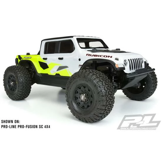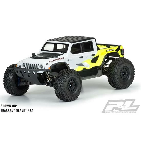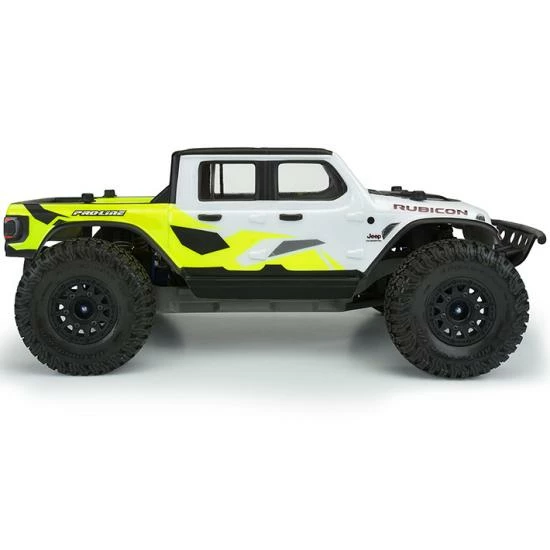 This is a Jeep® Gladiator Clear Body for SC and MT. Calling all Jeep® fans! Pro-Line is proud to release the all-new Jeep® Gladiator Rubicon body for your favorite Short Course and Monster Trucks! The Gladiator combines the iconic and unmistakable Jeep® body styling with the utility and ruggedness of a truck that tells everyone that you are ready for adventure. Pro-Line has included all the scale Jeep® Gladiator detail you would expect into the body and sticker sheet that will completely transform the look of your truck. The 1-piece Jeep® Gladiator body comes clear, so you can customize the look of your truck in any way you desire! This body is destined to become a must-have for your Short Course or Monster Truck. Get your Jeep® Gladiator body today!