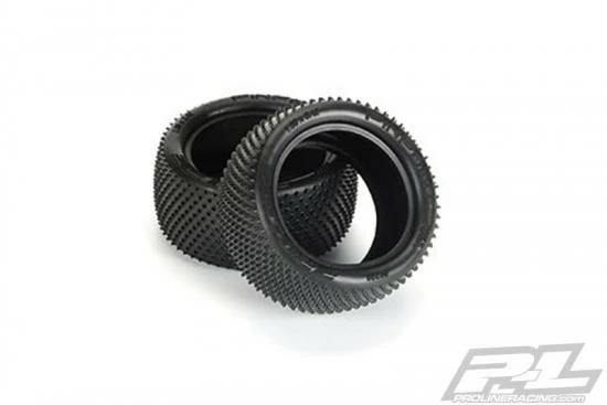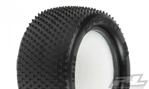This is a pair of Pin Point Buggy Rear Carpet Tires. Indoor Carpet Off-Road Racing is a growing segment of the racing scene and Pro-Line is ready to take over with the new Pin Point Buggy Rear Tire. The Pin Point has thousands of Ultra-Sharp Pins in a unique Sine Wave pattern that grip the carpet better than Velcro®. Pro-Line engineers have perfected an all-new Carpet Tire Compound (Z3) specifically for the needs of Indoor Carpet racing. This new Z material provides the best grip on a variety of surfaces used indoor (carpet, wood, cardboard, plastic, etc.). Don’t get Rug-Burned by using the wrong Carpet tire; be on Point with the fastest carpet tire yet – Pro-Line’s Pin Point!