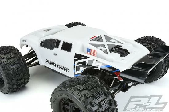 This is a Brute Bash Armor (White) Body for E-REVO® 2.0. Pro-Line is proud to introduce the Pre-Cut Brute Bash Armor body specifically for your E-REVO® 2.0. The Brute Bash Armor White Body has been developed from the ground up to be the toughest body Pro-Line has ever produced. The all-new Bash Armor material is twice as thick as regular 1:8 truck bodies and is ultra-flexible to reduce the chance of cracking and shattering. Unlike clear polycarbonate, the Bash Armor material is White and is not paintable, so Pro-Line includes detailed decal sheets to complete the look.