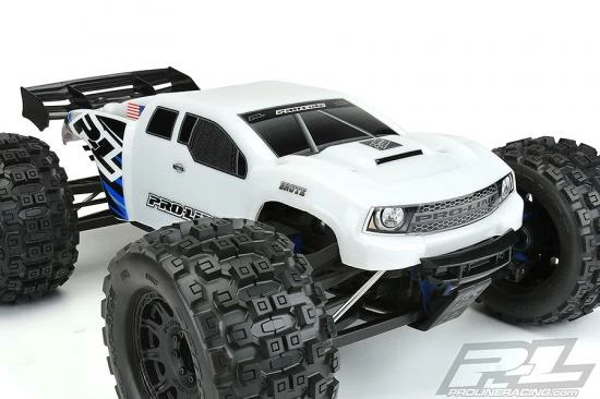 The Brute is Pro-Line’s take on a modern truck and features a bold grill with eye-pleasing body lines sure to turn heads at your local bash spot. This body has been specifically designed to fit the unique shape of the E-REVO® 2.0 including the stock inner cage and latch system! This is the ultimate extreme bash body for your truck! Get your Pre-Cut Brute body for E-REVO® 2.0 now!
