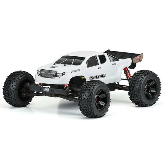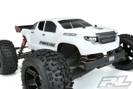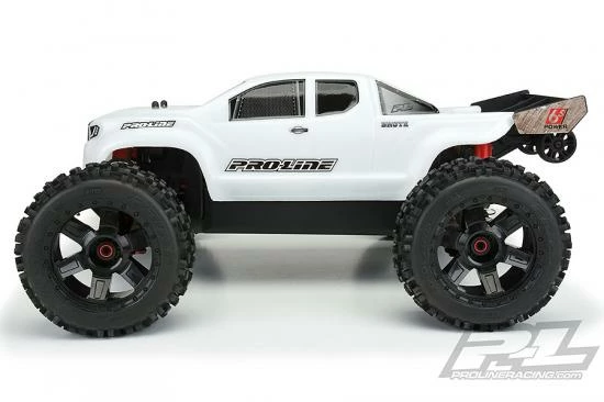 This is a Brute Bash Armor Body for ARRMA Outcast & Notorious. Attention ARRMA Army! Pro-Line has a brand-new Brute Bash Armor body for your Outcast & Notorious! If you are like us, you want a dependable high strength body you can count on for your truck. The Brute Bash Armor White Body has been developed from the ground up to be the toughest body Pro-Line has ever produced. The all-new Bash Armor material is twice as thick as regular 1:8 truck bodies and is ultra-flexible to reduce the chance of cracking and shattering. Unlike clear polycarbonate, the Bash Armor material is White and is not paintable, so Pro-Line includes detailed decal sheets to complete the look. The Brute is Pro-Line’s take on a modern truck and features a bold grill with eye-pleasing body lines sure to turn heads at your local bash spot. This body has been specifically designed to fit the unique shape of the Outcast & Notorious. If you are ready to battle your buddies, then get the strongest body possible for your truck – the Pre-Cut Brute body with Bash Armor material technology!