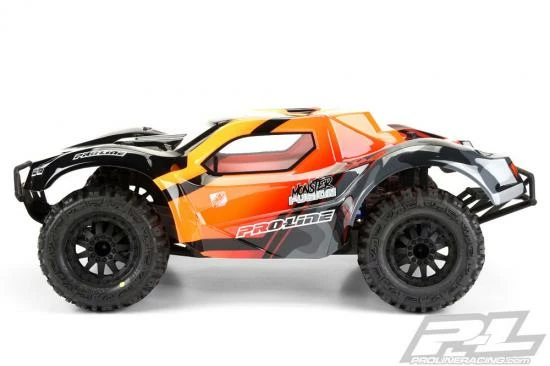 This is a Monster Fusion Clear Body for SC with 2.8″ MT Tires. Do you love using huge 2.8€ Tires and Wheels on your Slash® or Slash® 4×4 but hate ripping up your SC body due to tire rub? Then we have the body for you! Introducing the Pre-Cut Monster Fusion Body specifically designed to work with Pro-Line’s 2.8″ Monster Truck tires on your Slash®. The Monster Fusion body has an aggressive, low-slung look with huge fender flares to cover your 2.8€ Trenchers or Badlands MX2.8’s! The body is Pre-Cut so you can spend more time doing what you love and also features large vents to prevent high speed blow overs. Using 2.8″ tires on your Slash® has become an incredibly popular upgrade due to the increased traction, stability, and improved ground clearance that the bigger tires provide. Pro-Line has made this option easier than ever before with the new Monster Fusion body. Convert your regular Slash® into a Monster with Pro-Line’s Pre-Cut Monster Fusion Body and 2.8″ Tires and Wheels! Get yours today!