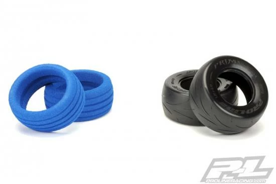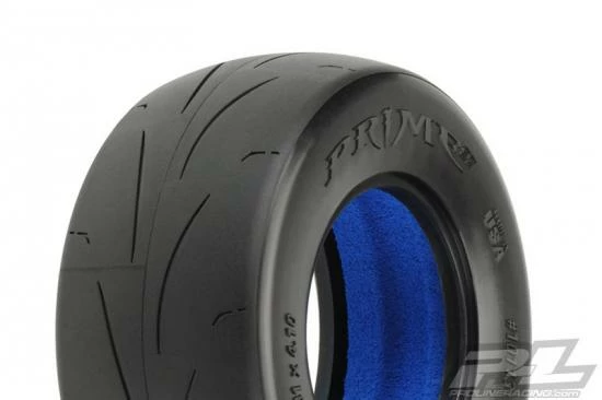 Pro-Line’s Prime tires feature unique grooves that add traction and stability when the track is freshly watered or when there is a slight layer of thin dust that would cause a traditional “slick” tire to spin. The raised treaded portion of the Prime tire has a distinctive rough surface texture similar to a ground “slick” tire and makes the Prime tire have the maximum performance right out of the package.