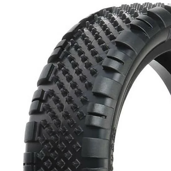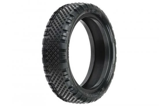 This is a pair of Prism 2WD Buggy Front Carpet Tires. Introducing the Prism 2WD Front Carpet Buggy race tire! The Prism 2WD front features tons of Ultra-Sharp Prism shaped Pins in the middle of the tire combined with Wedge style pins on the outside for incredible steering on small and tight carpet tracks without the edgy feel of full pin tires. The pins on the Prism are slightly smaller than the original Pin Point tire but there are many more of them, which results in faster and more consistent lap times. The Prism pins have been positioned with the knife edge pointed front to back and side to side for maximum grip and stay sharp even as they wear down. The Prism 2WD Front tire perfectly pairs with Pro-Line’s Prism 2.0 Rear tire for ideal carpet racing performance. The Prism tire is another leap forward in the hot carpet racing scene; be the first with the fastest carpet tire yet – Pro-Line’s Prism 2WD Front!