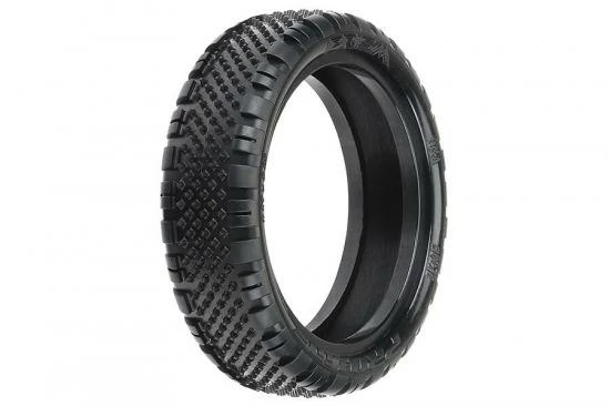 This is a pair of Prism 2WD Buggy Front Carpet& Tires. Introducing the Prism 2WD Front Carpet Buggy race tire! The Prism 2WD front features tons of Ultra-Sharp Prism shaped Pins in the middle of the tire combined with Wedge style pins on the outside for incredible steering on small and tight carpet tracks without the edgy feel of full pin tires. The pins on the Prism are slightly smaller than the original Pin Point tire but there are many more of them, which results in faster and more consistent lap times. The Prism pins have been positioned with the knife edge pointed front to back and side to side for maximum grip and stay sharp even as they wear down. The Prism 2WD Front tire perfectly pairs with Pro-Line’s Prism 2.0 Rear tire for ideal carpet racing performance. The Prism tire is another leap forward in the hot carpet racing scene; be the first with the fastest carpet tire yet – Pro-Line’s Prism 2WD Front!