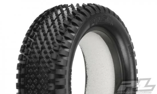 This is a pair of Prism 4WD Front Carpet Tires. Introducing the all-new Prism Carpet 4WD Front race tire! The Prism features tons of Ultra-Sharp Prism shaped Pins in the middle of the tire combined with Wedge style pins on the outside for massive forward grip without the edgy feel of pin tires. The pins on the Prism are slightly smaller than the original Pin Point tire but there are many more of them, which results in faster and more consistent lap times. The Prism pins have been positioned with the knife edge pointed front to back and side to side for maximum grip and to stay sharp even as they wear down. The Prism 4WD Front tire perfectly pairs with Pro-Line’s Prism Rear tire for ideal carpet racing performance. The Prism tire is destined to change the carpet racing scene; be the first one with the fastest carpet tire yet – Pro-Line’s Prism!