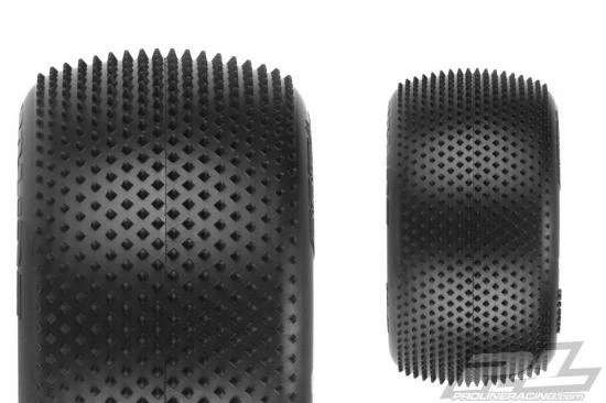 This is a pair of Prism Stadium Truck Rear Carpet Tires. Introducing the all-new Prism Carpet Truck Rear race tire! The Prism features 1,440 Ultra-Sharp Prism shaped Pins laid out in a unique pattern that grip the carpet better than Velcro®. The pins on the Prism are slightly smaller than the original Pin Point rear tire but there are many more of them, which results in faster and more consistent lap times. The Prism has been positioned with the knife edge pointed front to back and side to side for maximum grip and to stay sharp even as they wear down. The Prism T perfectly pairs with Pro-Line’s Wedge T front tire for ideal carpet racing performance. The Prism tire is destined to change the carpet racing scene; be the first one with the fastest carpet tire yet – Pro-Line’s Prism!