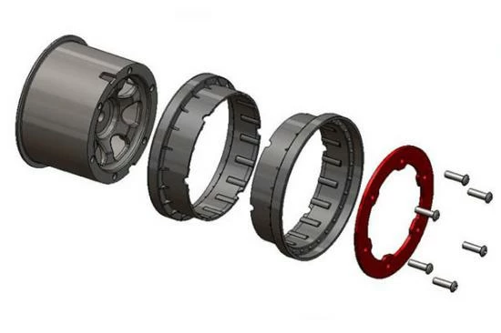 Epic takes today’s tough off-road looking wheel and turns it into a simple to use, reusable platform. It’s a one-sided bead-loc system that puts even pressure on both beads of the tire. Six screws and one bead-loc ring is all that mates the wheel and tire together and you’re ready to go. The wheel and inner clamping sleeves are made from durable nylon for the roughest and toughest of drives. To get a satin black finish, the Epic’s wheel face has a raw, EDM finish to it.
