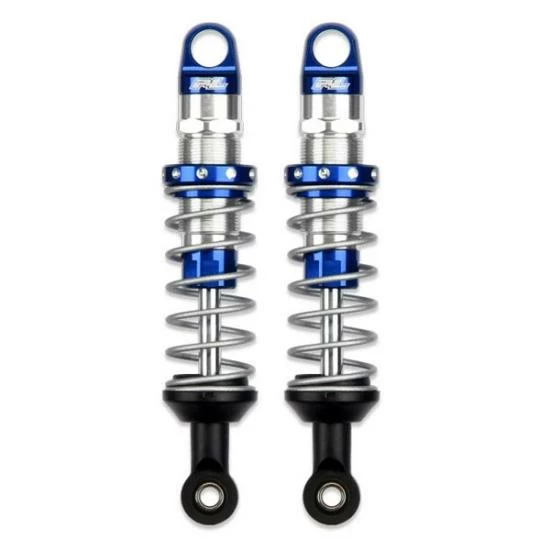This is a pair of Pro-Spec Scaler Shocks. Pro-Line is proud to announce the next generation of RC Shock Technology with our all-new Pro-Spec Scaler Shocks! The new Shocks feature CNC machined Aluminum Shock Caps, Collars, Bodies, Bottom Caps and Hard Chrome Coated Steel Shock Shafts all made to exacting tolerances. X-Ring seals are used as the main shaft seal for smooth, low friction action and to prevent leaks. Just like Pro-Line€™s other Pro-Spec Shocks, the new Scalers are meant to stand out from the crowd with bright Chrome and Blue anodizing. From the top mounting hole to the bottom mounting hole these Pro-Spec Scaler Shocks measure out to be 70mm at full extended length and collapse down to about 54mm and they include extra 5mm longer Shock Ends to increase the shock length! These short shocks are perfect for super scale rigs! Just like Pro-Line€™s extremely popular PowerStroke Shocks, the Pro-Spec Scaler Shocks come mostly pre-built (just add oil) and are designed to fit on many popular crawler vehicles.
