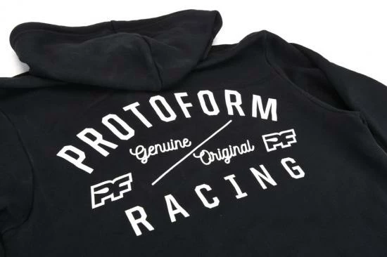 The Bona Fide hoodie shows your pride in PROTOform’s genuine, original RC products. The front features a small PF icon on the left chest along with contrasting white zipper and drawstrings, while the back displays a vintage style racing crest. It’s printed on a super soft and relaxed unisex hoodie, spun from a plush poly-cotton blend.