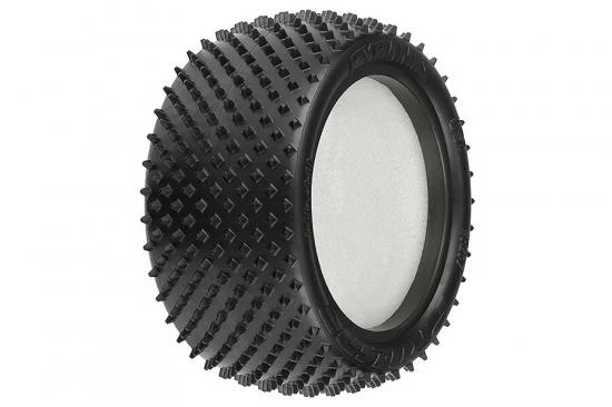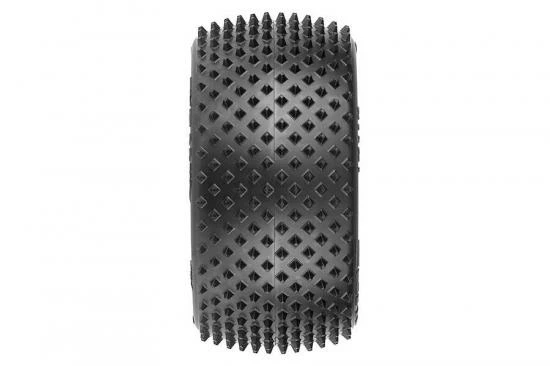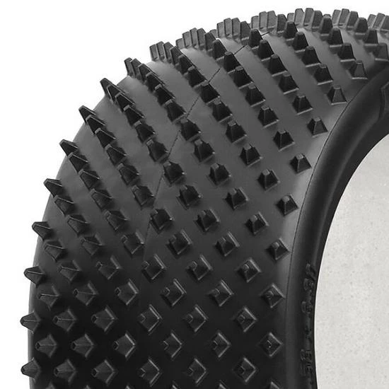 This is a pair of Pyramid Buggy Rear Tires. Astro turf racing has been steadily growing in the U.S. and around the World and Pro-Line has you covered with the Pyramid buggy rear tire! The Pyramid features hundreds of large pyramid shaped pins with the knife edge pointed front to back and side to side for maximum grip that stay sharp even as they wear down. The carcass shape has been optimized for the demands of Astro racing, which is slightly smaller and narrow than standard dirt tires for improved agility. The Pyramid comes in Medium (CR3) compounds for hot weather conditions. If you are going Astro turf racing, you need some Pyramids! Get yours today!