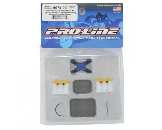 This is the Scale Accessory Assortment #6 for Scale Crawlers.  Extreme 4×4’s call for Extreme Power and our Assortment #6 delivers. You get two simulated Dry Cell batteries with hardware that allows you to configure either a dual or single battery system.  Backing that up, is a highly detailed replica of a 3000K Power inverter. With Pro-Lines Scale Accessories Assortment #6 your Scale rig will never be in short supply of electrical power.