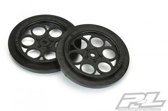 This is a pair of Showtime Front Runner 2.2″/2.7″ Black Drag Racing Front Wheels. It’s Showtime! Pro-Line has an all-new 2.2″/2.7″ Black Drag Front Wheel featuring a scale spoke pattern that mimics full-size drag wheels. The Showtime Front Runner 2.2″/2.7″ wheel is a perfect fit for Pro-Line’s new Front Runner 2.2″/2.7″ Tires (PRO10197203) and is designed to be super lightweight and narrow for maximum performance. The Showtime Front Runner Wheels are a strong and lightweight 12mm hex wheel making them the ideal choice for performance drag racing. The wheel offset is ideal for Losi® 22Sâ„¢ No Prep Drag Car, 2wd Slash® trucks converted to no-prep Drag Racing cars, and AE DR10. This wheel is designed to eliminate the need for foam insert completely for the ultimate in lightweight performance. The Showtime Front Runner Wheel is proudly made by Pro-Line and Made in the USA. Launch your no-prep Dragster to the next level with the Pro-Line Showtime Front Runner Drag Wheels today!