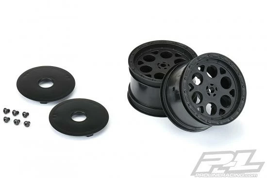 This is a pair of Showtime 2.2″ Rear Sprint Car Dirt Oval Wheels. Pro-Line is proud to introduce the new Showtime 2.2″ Sprint Car Wheels made specifically for Dirt Oval racing! The Showtime wheel features a scale spoke pattern like full-size sprint car wheels and includes an optional dish wheel face cover if that is the look you prefer. Pro-Line’s new Sprint Car wheels are made from lightweight and durable black nylon and feature a 12mm hex molded into the wheel to fit as many applications as possible. Standard 2.2″ Buggy tires glue directly to the Showtime wheel, so you can choose which tires will take you to the winner’s circle. It’s time for you to make the big show with Pro-Line’s new Showtime wheels! Get yours today!