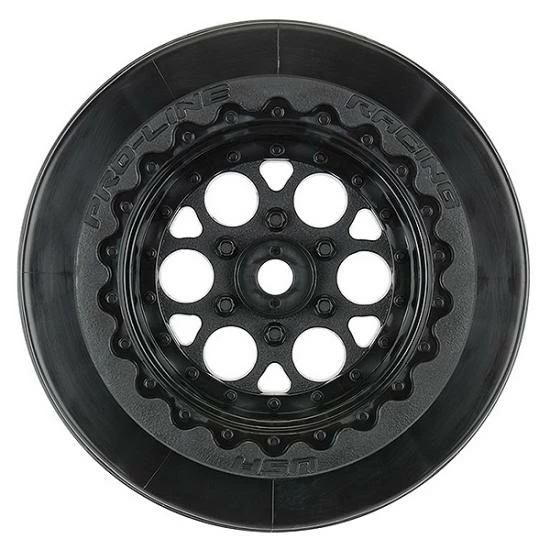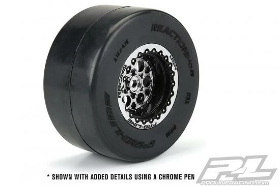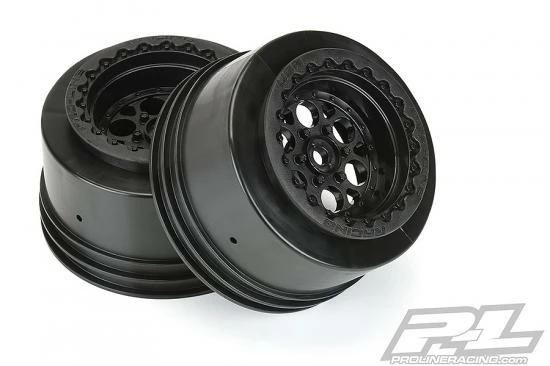It’s Showtime! Pro-Line has an all-new Wide SC format Black Drag wheel featuring a scale spoke pattern that mimics full-size drag wheels. The Showtime+ Wide SC wheel is a perfect fit for Pro-Line’s new Reaction+ HP Wide SC tires (PRO10188203), but this wheel is also designed to fit standard width 2.2″/3.0″ SC tires using the extra inner bead channel. The Showtime+ wheels are strong and lightweight 12mm hex wheels making them the ideal choice for performance drag racing. The wheel offset is ideal for Losi® 22Sâ„¢ No Prep Drag Car (LOS03035T1), 2wd Slash® trucks converted to no-prep Drag Racing cars and AE DR10. The Showtime+ Wide SC Drag wheel and every other wheel that Pro-Line makes is proudly Made in the USA. Launch your no-prep Dragster to the next level with the Pro-Line Showtime+ Wide SC Drag Wheels today!