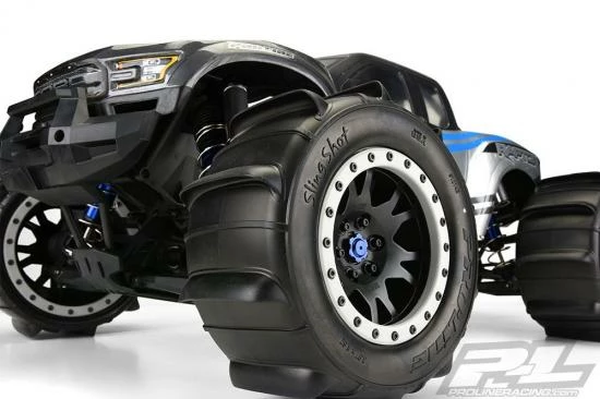 If you want to take your X-MAXX® to the next level of Sand & Snow Performance and throw up huge rooster tails then you need to get Pro-Line’s new Sling Shot 4.3″ Pro-Loc Tires mounted to Impluse Pro-Loc Wheels!