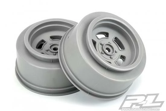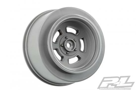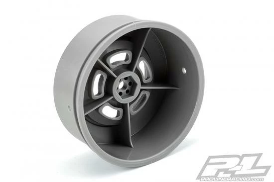 This is a pair of Slot Mag Drag Spec 2.2″/3.0″ Stone Gray Rear Wheels. Pro-Line is kicking it back old-school with Slot Mag style wheels for your no-prep SC drag car! Slot Mag style wheels have been a staple wheel design in racing for many decades and Pro-Line is proud to bring it to you in 2.2″/3.0″ Stone Gray rear wheels. The outside ring of this wheel has a shiny, polished finish while the spoke detail is textured with a matte finish to match the look and feel of the real thing! The Slot Mag wheels were specifically made for no-prep Drag Racing and are a perfect fit with Pro-Line’s Hoosier Drag 2.2″/3.0″ Rear Tires!
