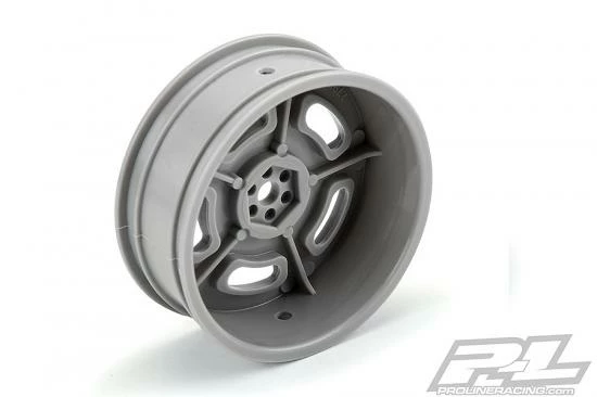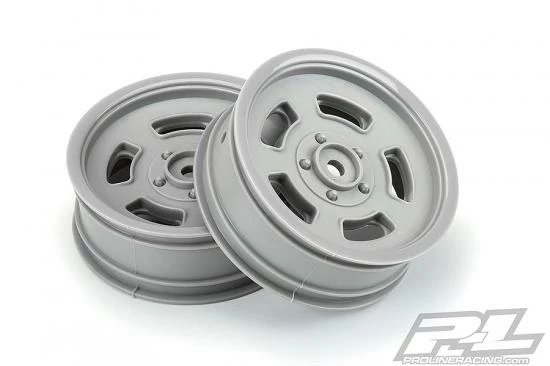 This is a pair of Slot Mag Drag Spec 2.2″ Stone Gray Front Wheels. Pro-Line is kicking it back old-school with Slot Mag style wheels for your no-prep SC drag car! Slot Mag style wheels have been a staple wheel design in racing for many decades and Pro-Line is proud to bring it to you in 2.2″ Stone Gray color plastic front wheels. The outside ring of this wheel has a shiny, polished finish while the spoke detail is textured with a matte finish to match the look and feel of the real thing! The Slot Mag wheels were specifically made for no-prep Drag racing and are a perfect fit with Pro-Line’s Hoosier Drag 2.2″ Front Tires!