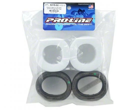 This is a pair of Square Fuzzie 2.2” Off-Road Buggy Rear Tires. Pro-Line is bringing back one of the most successful and iconic tread patterns of all time; the World Champion Square Fuzzie. The original Square Fuzzie was so advanced for its time that it dominated the race tracks for many years and was never duplicated. Now, Pro-Line is proud to introduce the all new and improved Square Fuzzie as a worthy successor to the Original. The new Square Fuzzie features countless square micro-pins laid out in a traction inducing grid pattern that will stick to the track like Velcro. The long center bars provide tons of forward bite and improved wear over the Original. These tires are ideal for any indoor/outdoor hard-packed dirt track where bar-type tires are not getting the job done. The new Square Fuzzies will give you the confidence inspiring forward and side bite to propel you to the front!