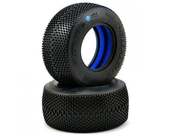 This is a pair of Stunner SC Tires. Pro-Line is ready to Stun the competition with a new Outdoor Short Course Tire: the Stunner! The Stunner combines the best features of the Tazer, Sniper and Blockade SC tires into one incredible tire for ideal Short Course traction. The center tread design of the Stunner is perfect for dusty and loamy outdoor tracks and the outer tread creates more aggressive side bite for consistent handling in loose conditions. Get the latest in outdoor Short Course Tire Technology from Pro-Line with the new Stunner SC!