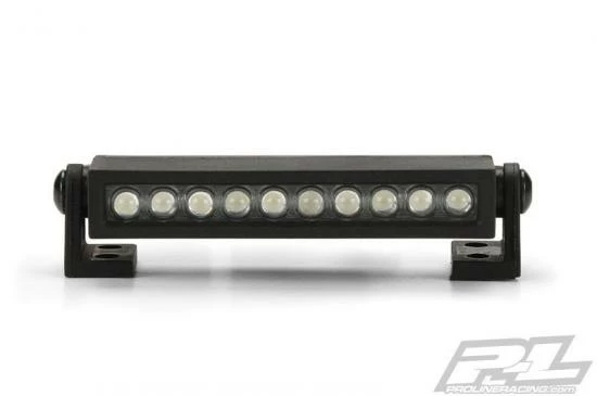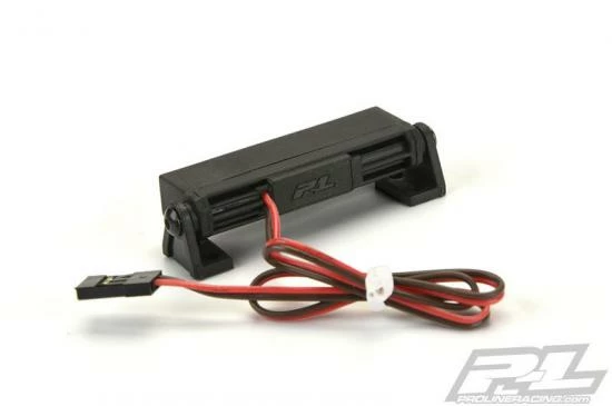 This is a 2″ LED Light Bar Kit. Pro-Line is proud to introduce a new 2″ LED Light Bar Kit with real, working LED Lights! The 2″ Light Bar comes with 10 LED Light bulbs pre-wired with a 12″ long cable that can plug directly into your receiver for power. The Lights are rated for 6V to 12V power, so you have the option to plug directly into a 3S lipo power source for Super-Bright LED Light! The LED Lights are housed in a durable Black Nylon housing branded with a P-L logo and includes the mounts and hardware you need to do a custom install on your Rock Crawler, Rock Racer, 1:8 MT and 1:10 MT vehicle. The 2″ LED Light Bar has also been designed to mount directly to the 6278-00 Overland Scale Roof Rack for an integrated scale appearance. Night Crawling has become the new cool thing to do with your scale rig, don’t get left in the Dark! Get Pro-Line’s new 2″ Super-Bright LED Light Bar Kit for your truck today!