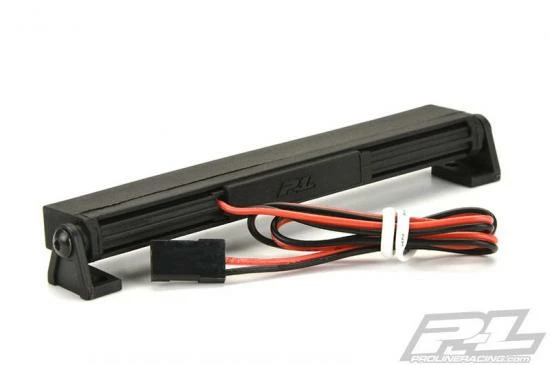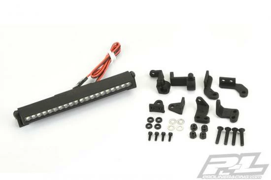 This is a 4″ LED Light Bar Kit. Pro-Line is proud to introduce a new 4″ LED Light Bar Kit with real, working LED Lights! The 4″ Light Bar comes with 20 LED Light bulbs pre-wired with a 12″ long cable that can plug directly into your receiver for power. The Lights are rated for 6V to 12V power, so you have the option to plug directly into a 3S lipo power source for Super-Bright LED Light! The LED Lights are housed in a durable Black Nylon housing branded with a P-L logo and includes the mounts and hardware you need to do a custom install on your Rock Crawler, Rock Racer, 1:8 MT and 1:10 MT vehicle. The 4″ LED Light Bar has also been designed to mount directly to the 6278-00 Overland Scale Roof Rack for an integrated scale appearance. Night Crawling has become the new cool thing to do with your scale rig, don’t get left in the Dark! Get Pro-Line’s new 4″ Super-Bright LED Light Bar Kit for your truck today!