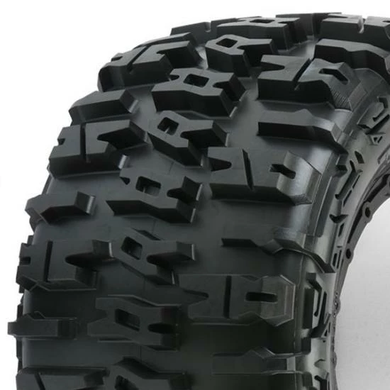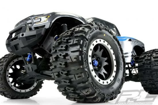 The Trencher tread was designed to have ultimate traction combined with long-lasting durability. Each tire lug is shaped to dig into whatever surface you are running on and is ultra-thick so that it is extremely durable. The Trencher 4.3″ tire features Pro-Line’s ground breaking proprietary Pro-Loc Technology that creates an ultra-secure bond to Pro-Line’s Impulse Pro-Loc X-MAXX® wheels while still being removable when required. The reinforced Tire bead fits into a uniquely shaped channel on the wheel and the bead-loc screws actually pass through the tire rubber before being pinched by the outer bead-loc ring to create the maximum possible mounting security.