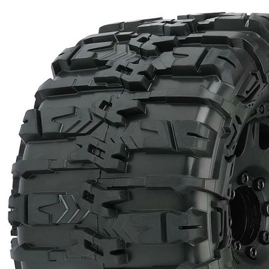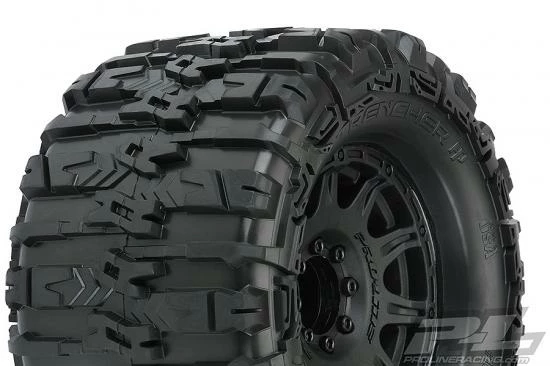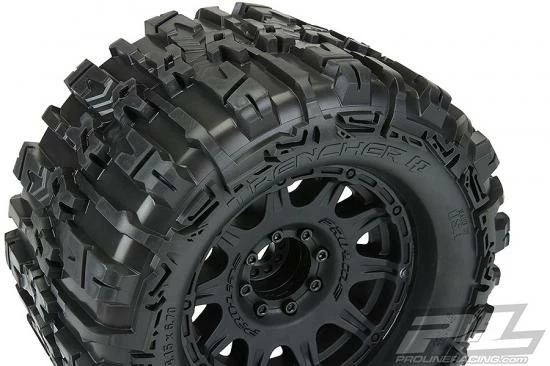 This is a pair of pre-mounted Trencher HP 3.8″ Belted All Terrain Tires. Pro-Line is proud to introduce the History-making Trencher HP 3.8″ BELTED All Terrain Truck Tires! Pro-Line has developed the technology to mold a High-Performance herringbone weave pattern Belt inside of the relentless, tall and grippy tread of the new Trencher HP. These are not your average belted tires! Made for All Terrain bashing, the Trencher HP 3.8″ tires will not balloon or expand during use and will still provide the incredible grip that you expect from Pro-Line tires due to the soft M2 compound. Just like all Pro-Line’s tires, they are proudly Made in the USA! Like the original Trencher X 3.8″ tire, the next generation Trencher HP 3.8″ is destined to become the ultimate, go-to Bash tire for your truck!