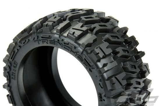 This is a pair of Trencher LP 2.8 Tires. Introducing the all-new Trencher LP (Low Profile) 2.8€ All Terrain Tire that is perfect for your Rustler® 2wd or Rustler® 4×4! Whether it is loose or hard-packed dirt, sand, snow, street or gravel the Trencher LP 2.8″ tire is up to the task. The Trencher LP 2.8″ is a direct replacement tire and will fit on any 2.8″ wheels including all of Pro-Line€™s incredible 2.8€ wheel options! The Trencher tread was designed to have ultimate traction combined with long-lasting durability. Each tire lug is shaped to dig into whatever surface you are running on and is ultra-thick so that it is extremely durable. The Trencher tread design has even won the RC Car Action Readers Choice Award 4 times and is a favorite among bashers everywhere! Get your own Low Profile 2.8€ Trenchers today!