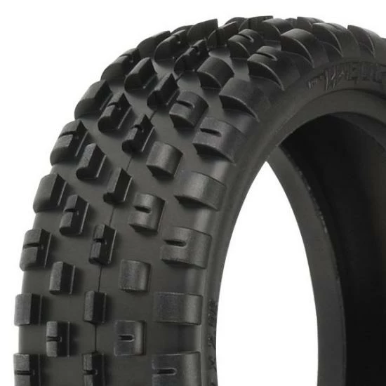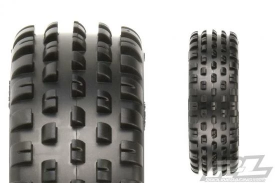 The Wide Wedge brings the popular Wedge tread pattern to a tyre carcass that fits on standard 2wd Front Wheels! That means no more cutting wheels or needing special narrow 2wd front wheels. The extra tyre width allows for an additional row of tread which the Pro-Line Engineers used to make the tyre directional, meaning the tyre can be mounted for either more aggressive steering or less! The Wide Wedge has a true drop-in bead that does not require cutting or hand fitting and is super low-profile just like you would expect out of your carpet tyres. The Hook shaped pins that the Wedge design is known for provide all the steering you can handle without being grabby. Pro-Line’s Z compounds provide unparalleled grip on a variety of surfaces used indoor (carpet, wood, cardboard, plastic, etc.) while still being long lasting. Be on the cutting edge of carpet tyre technology with Pro-Line’s new Wide Wedge 2wd Front Tires!
